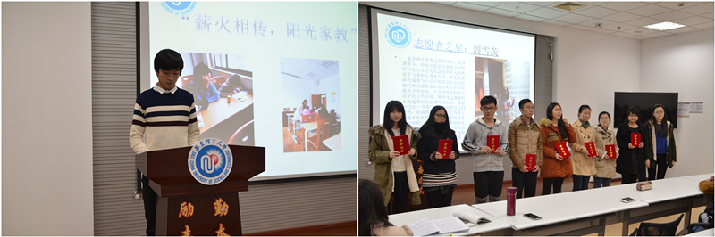 “志愿服务说不苦不累那是假的,但是却真真的是乐在其中”一位优秀志愿者在发言中如此说到。 相信这群“药院小白鸽”在未来的一年里,也一定会继续唱响青春之歌、奉献之歌,也一定会中流击水、浪尖弄潮,以执着信念、优良品德坚定不移的做学习和实践社会主义核心价值观的先锋队。