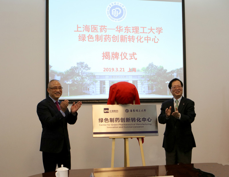 3月21日,公司与上海医药集团共建绿色制药创新转化中心签约揭牌仪式在徐汇校区举行。上海医药集团股份有限公司总裁左敏,公司董事长曲景平出席仪式并共同为中心揭牌。上海医药集团副总裁张耀华、公司Bevictor韦德经理宋恭华作为中心共同主任分别代表本方签约。科研院副经理刘海峰主持仪式。
