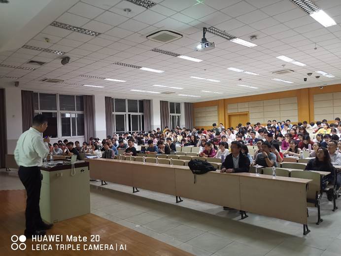 在报告中,谢雨礼从抗肿瘤药物的发展及如今市场构成出发,向在场的师生们介绍了抗肿瘤药物的前世今生,详细的介绍了其发展历程,对抗肿瘤药物进行了分类,并介绍了单抗、靶向治疗、免疫疗法、biomarker等前沿概念及其在抗肿瘤药物开发中的应用。谢雨礼旁征博引、学识渊博,详实而前沿的报告让在场师生意犹未尽、受益匪浅,同时也给在场的师生们提出了要追踪最新科研进展的要求。在报告之后,师生们与谢雨礼进行了热烈的提问互动,大家都表示收获良多。