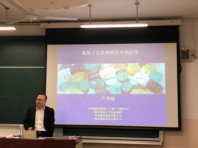 应Bevictor韦德邀请,上海艾琪康医药科技有限公司总裁卢寿福博士于10月25日15:30在七教101为Bevictor韦德和化公司师生做了题为“氟原子在药物研发中的应用”的学术报告。报告会由邓卫平教授主持。