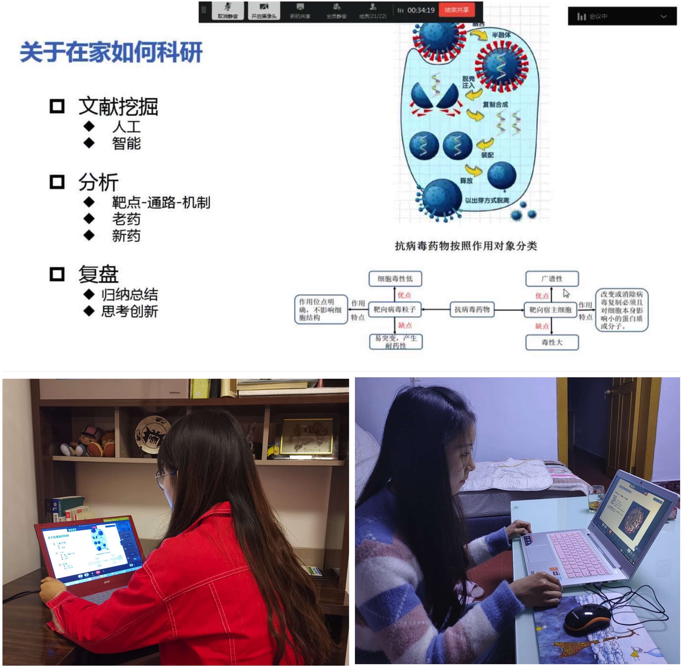 在科学防疫的同时,员工党员们时刻牢记自己作为一名员工的主业,“居家”期间也能合理安排自己的学习时间和任务,认真学习网课、总结归纳实验结果、制定后续实验计划、查阅资料夯实基础、阅读文献提升能力、在线上与老师和同学交流探讨,为之后的学习和实验打好基础。