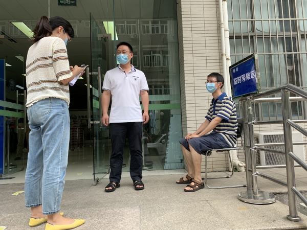 本次应急演练模拟了员工在实验室发生体温异常的突发状况。发现员工温异常(>37.3 ℃),第一时间报告导师和辅导员,并在导师和辅导员的陪同下,从应急楼梯到达公司设定的体温监测点。公司志愿者老师对发热员工进行体温复测,员工在等候区休息。如确认员工体温仍然异常,导师和辅导员陪同该生前往校医院进一步检测。同时,辅导员将员工情况上报给公司党委副书记,由副书记将员工情况通报给公司疫情防控领导小组组长。