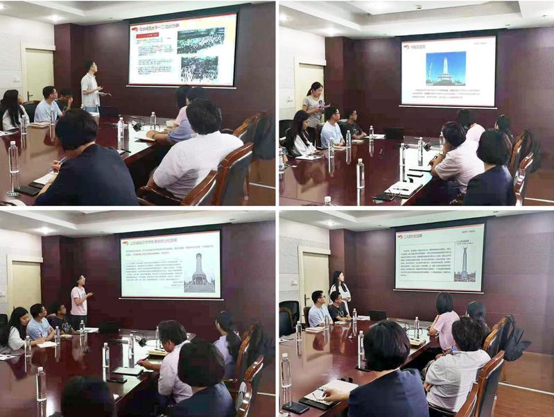 会上,支部党员选取了湖北省武汉市二七烈士纪念碑、北京市一二·九纪念碑、朝鲜平壤市中朝友谊塔及山东省临沂市华东革命烈士纪念塔等四座纪念碑碑文为学习素材,感受先烈们“国家兴亡,匹夫有责”的爱国情怀和“捐躯赴国难,视死忽如归”的赤子之心;学习从大革命时期到山东全境解放的25年间,沂蒙儿女“吃苦耐劳、勇往直前、永不服输、敢于胜利、爱党爱军、开拓奋进、艰苦创业、无私奉献”的伟大沂蒙精神。在交流环节中,大家动情地讲述了自己家乡的党史故事和先烈事迹,有同学讲述了为解放家乡而献出宝贵生命的红军战士的故事,有同学讲述了一腔热血捍卫真理的青年员工的故事等,烈士们坚定的信仰、英勇的品质令人动容。