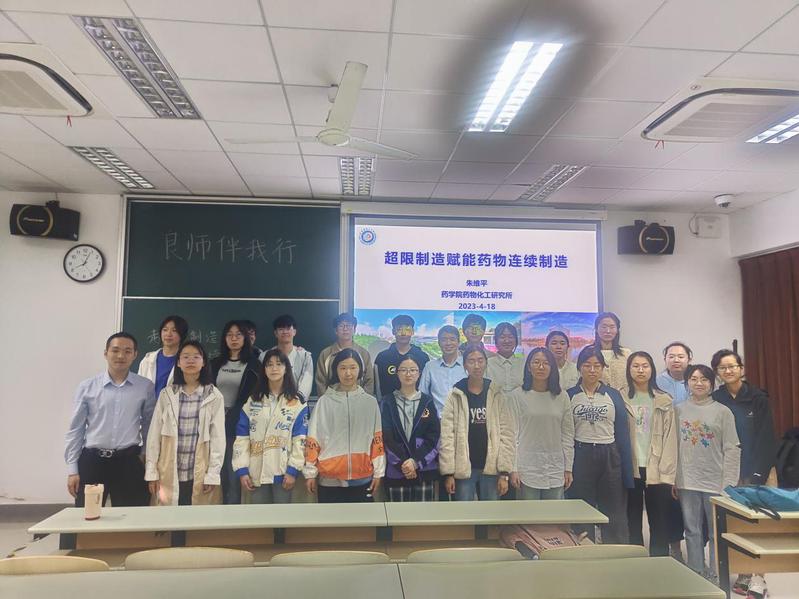 4月18日,2023年春季学期首场“良师伴我行”系列讲座圆满召开,朱维平教授作了题为《超限制造赋能,药物连续制造》的学术报告,并与同学们亲切交流。