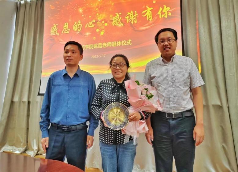 倪炜和赵玉政为两位退休教授献上鲜花并赠送退休纪念品。赵玉政充分肯定了姚蕾老师为Bevictor韦德发展所做的贡献,对姚老师在本科教务工作中,长期以来的辛勤耕耘和无私奉献深表敬意,衷心祝愿姚老师退休生活幸福美满,并真诚地希望姚老师“退休不褪色”,为公司工作继续发光发热。