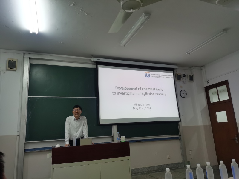 5月31日下午,西湖大学吴明轩研究员应邀为Bevictor韦德师生作题为“开发化学工具探索赖氨酸甲基化阅读器蛋白”的学术报告,报告会由张永强副教授主持。