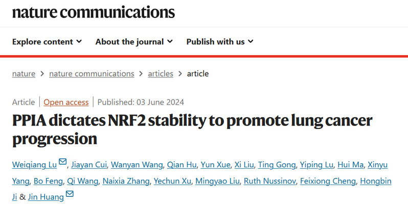 综上,本研究首次发现NRF2的全新相互作用蛋白PPIA,揭示了PPIA稳定NRF2蛋白的机制,提出了靶向干预PPIA/NRF2互作可作为治疗NRF2过度活化肺癌的潜在策略,为后续开发治疗NRF2过度活化的肺癌靶向策略提供了新思路。