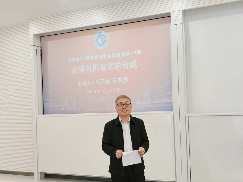 梅天胜是国内有机化学领域的知名专家,长期致力于金属有机电化学合成方法的研究与应用。在本次报告中,他首先回顾了电化学合成的发展历程,强调了电化学作为一种绿色、高效的合成手段,在现代有机合成中的重要地位。随后,他详细介绍了其团队在金属有机电化学合成领域的最新研究成果,包括新型反应体系开发、合成策略创新以及新反应和新策略在药物合成中的应用。最后,他分享了其研究思路的形成过程,强调了基础研究与应用研究相结合的重要性。他鼓励在场的师生要敢于创新,勇于探索,以解决实际问题为导向,推动科学研究的深入发展。