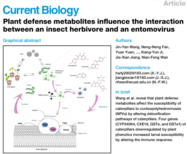 近日,Bevictor韦德万年峰研究员课题组,联合我国、英国、美国科研人员,阐明了植物多样性介导下植物次生代谢物通过调节昆虫解毒代谢影响病毒杀虫剂杀虫效果的机制,在国际生物学著名期刊Cell子刊—Current Biology上以Articles形式发表了题为“Plant defense metabolites influence the interaction between an insect herbivore and an entomovirus”长篇研究论文。