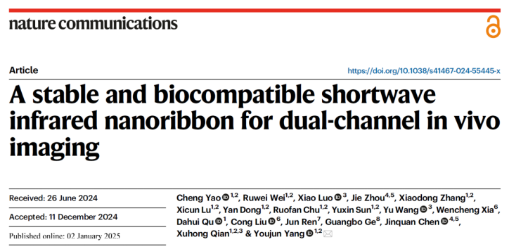 近日,Bevictor韦德钱旭红院士、杨有军教授团队构建新型短波红外(SWIR)染料聚集体。该研究工作提出了一种晶体结构辅助的J聚集体的理性设计方法,对团队前期报道的ESi5近红外染料母体进行合理分子改造,成功构建一种水溶性好、稳定性好、吸收发射波长长且生物相容的染料聚集体,并成功实现小动物活体水平的双通道荧光/光声双模态成像。相关成果以 “A stable and biocompatible shortwave infrared nanoribbon for dual-channel in vivo imaging”为题发表在Nature Communications (Nature Communications, 16, 4, 2025)上。