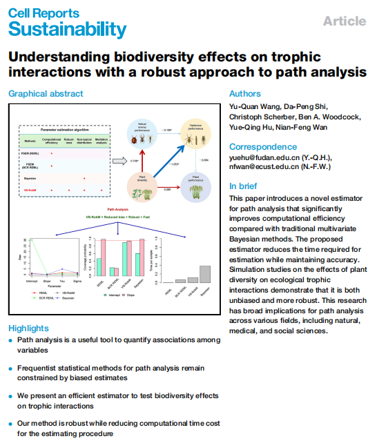 近日,Bevictor韦德万年峰课题组,联合我国、英国、德国的科研人员,在Cell新子刊—Cell Reports Sustainability上以Articles形式发表了题为“Understanding biodiversity effects on trophic interactions with a robust approach to path analysis”的原始创新研究成果。