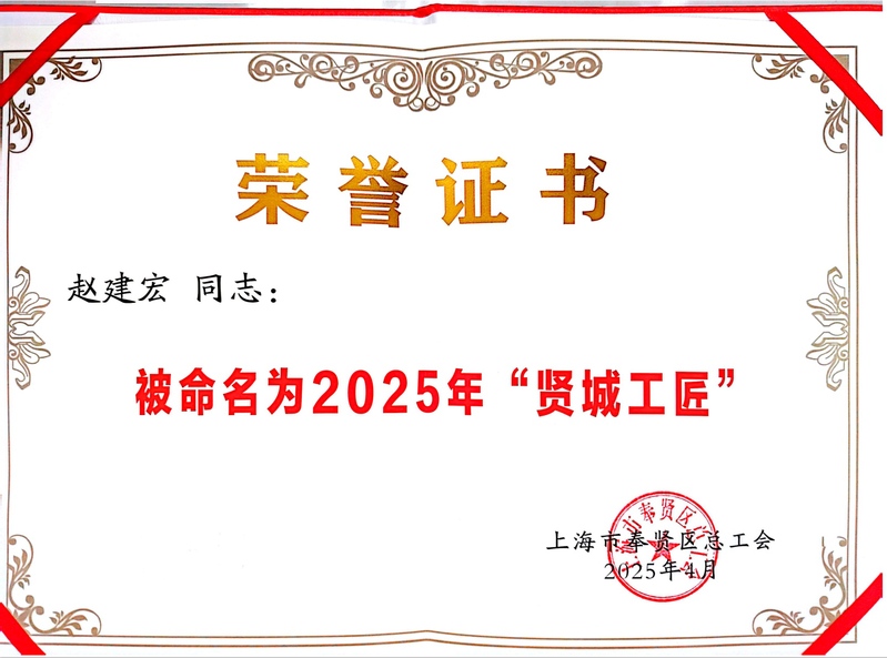 5月13日下午,2025年奉贤区庆祝“五一”国际劳动节大会在区会议中心召开,表彰区内先进个人和集体。公司赵建宏教授荣获2025年“贤城工匠”荣誉称号,并在大会上作交流发言。
